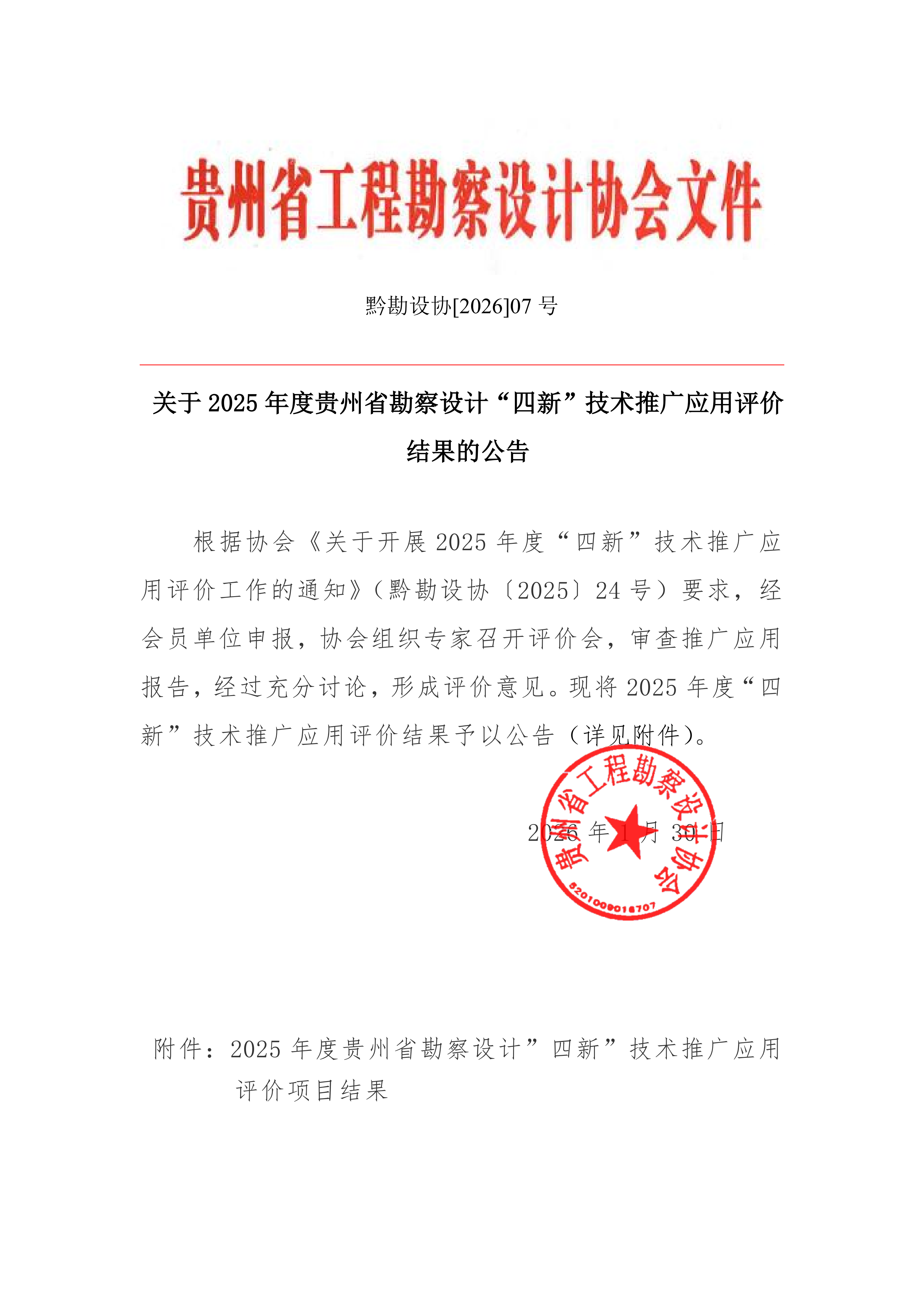 关于2025年度贵州省勘察设计“四新”技术推广应用评价结果的公告